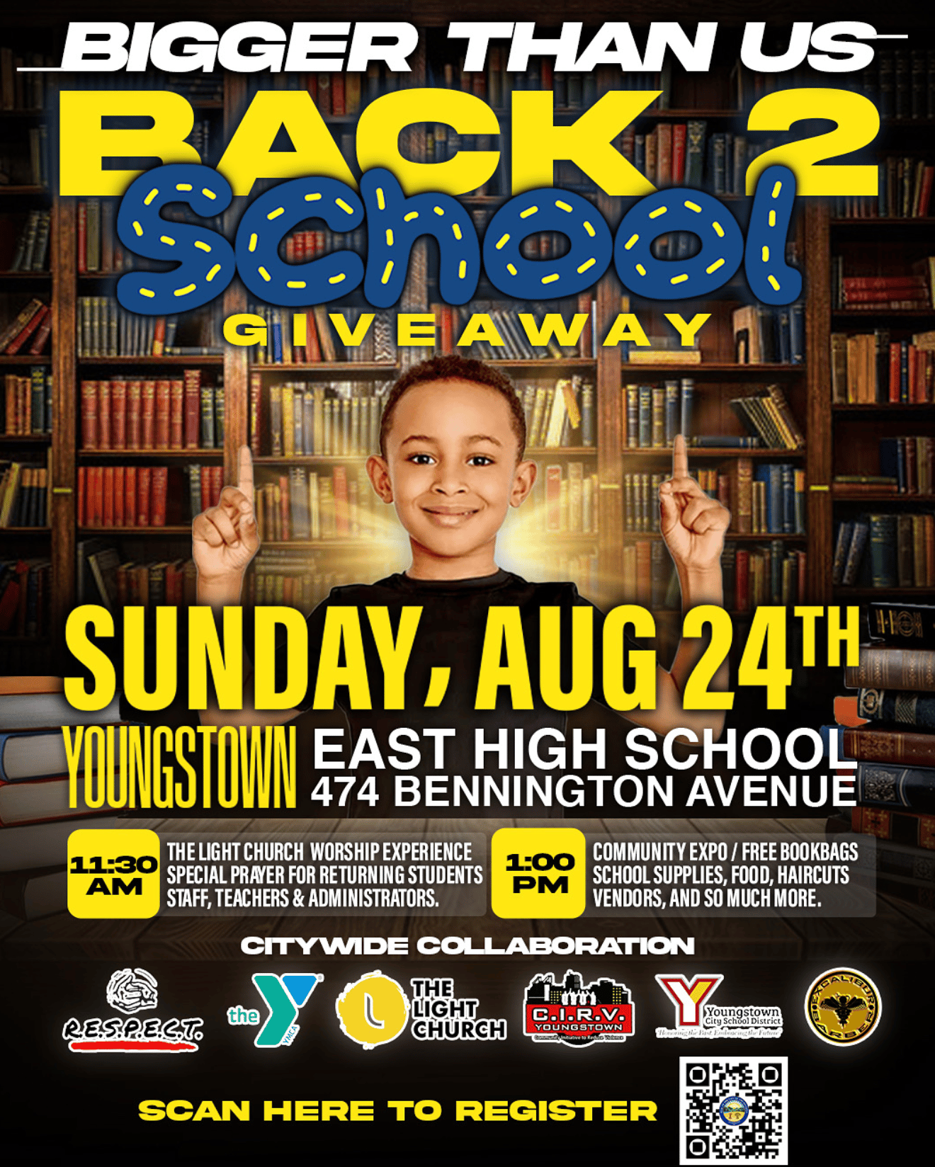 YCSD’s citywide Bigger Than Us” Back‑to‑School Giveaway lands Sunday, Aug 24 at East High—school supplies, haircuts, food, games, and community resources. Event kicks off after an 11:30 a.m. service; expo/giveaway runs 1:00–6:00 p.m.