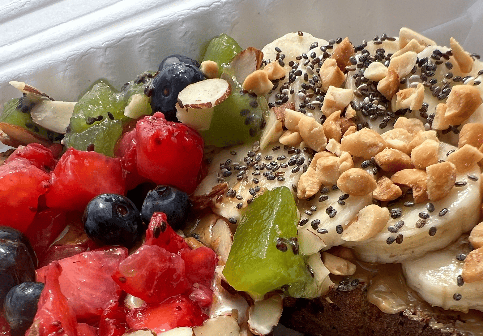 If your weekend plans don’t include Toasted Elvis… you’re doing it wrong. Thick-cut multigrain toast gets the rockstar treatment with creamy peanut butter, sliced bananas, a drizzle of honey, and a sprinkle of crunchy peanuts and chia seed. One bite, and you’ll understand why this one’s fit for The King himself. (Insert hip roll here)